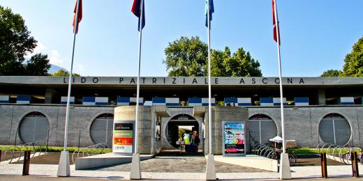Importante opera architettonica realizzata dall’architetto di origine asconese Livio Vacchini (1933-2007) nel 1981-1986. L’edificio è concepito come una sorta di filtro che il pubblico attraversa per prepararsi al bagno. Vacchini ha ideato due muri che separano città e spiaggia, ritmati e aperti da grandi cerchi che ben segnano il passaggio da uno spazio all’altro. La struttura contiene un ristorante, gli spogliatoi e un chiosco.